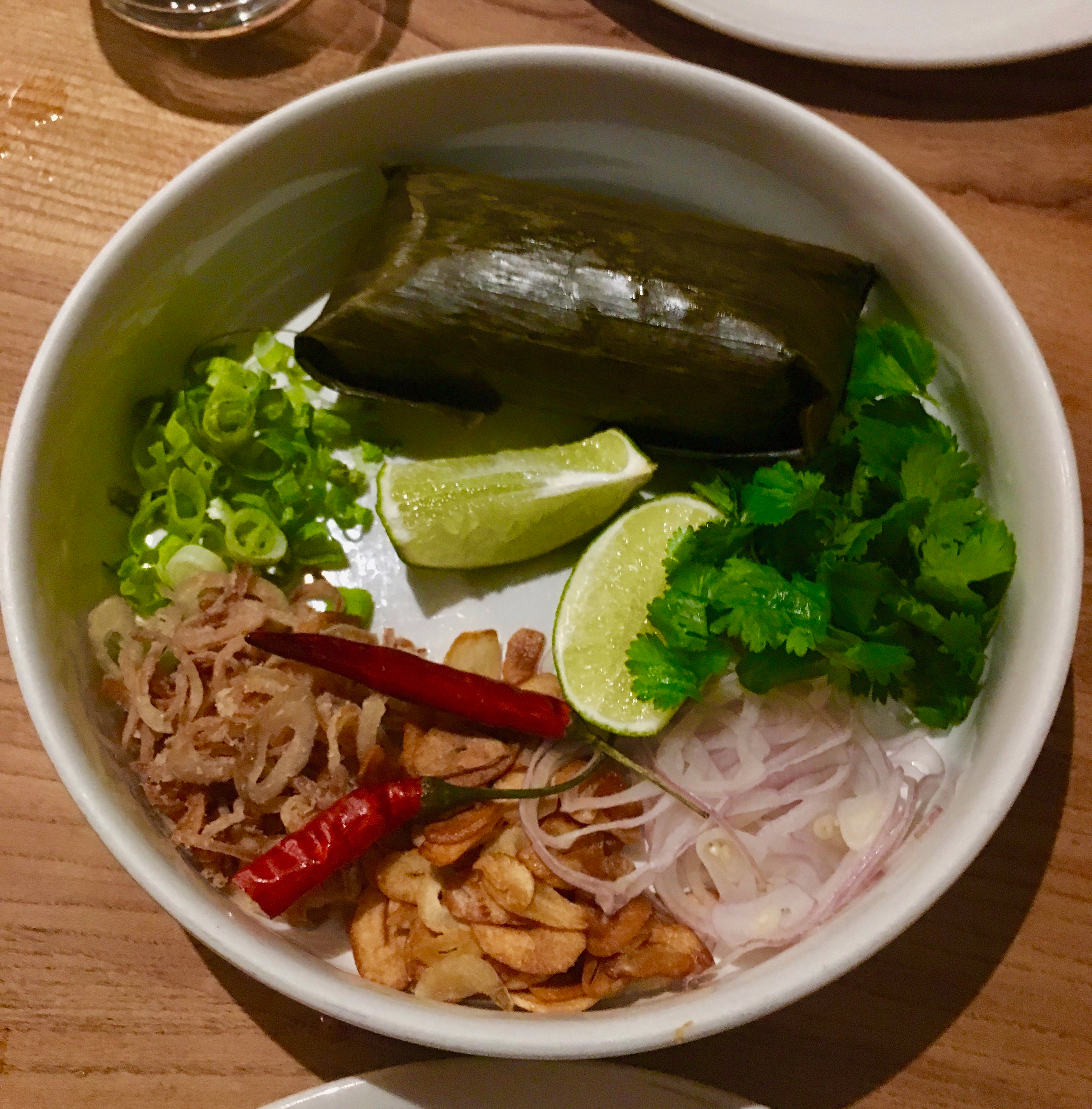 If I had to choose, and it’s a hard choice, this maybe my favorite dish. The pork has a depth of flavor that I can only describe as an indescribable amazingness. This indescribable amazingness also is infused into the rice, +1 for banana leaf steaming technique. A great touch is the garlic chips which add a nice crunchy texture to the dish.